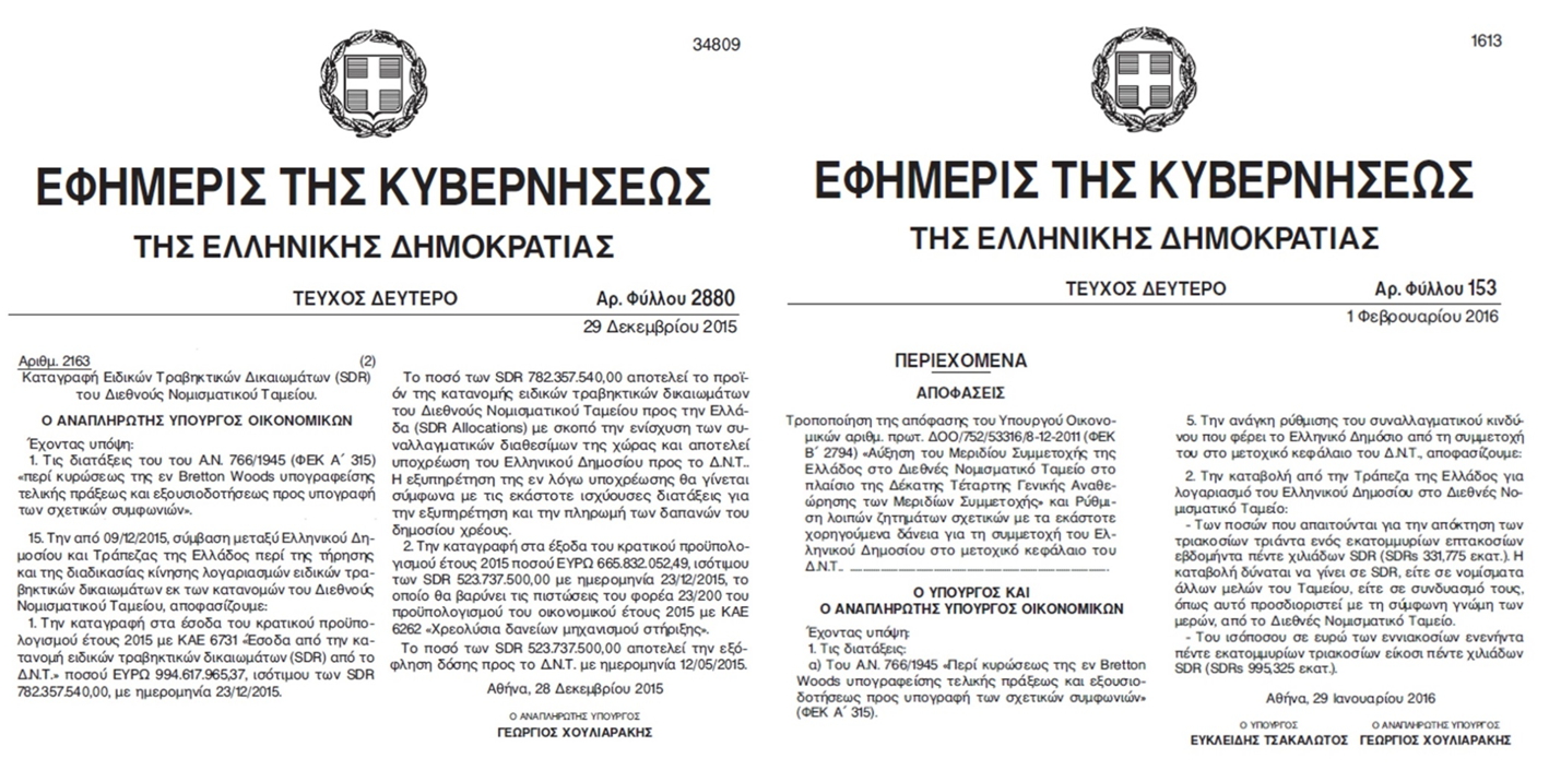 3) ΑΠΟ ΤΟΥΣ ΚΑΤΑΠΙΣΤΕΥΜΑΤΙΚΟΥΣ ΛΟΓΑΡΙΑΣΜΟΥΣ, ΔΗΛΑΔΗ ΑΠΟ ΤΟΝ ΠΛΟΥΤΟ ΤΩΝ ΕΛΛΗΝΩΝ, ΟΙ ΚΥΒΕΡΝΗΣΕΙΣ ΤΗΣ ΕΛΛΑΔΟΣ ΑΝΤΛΟΥΝ ΚΕΦΑΛΑΙΑ ΚΑΘΕ ΧΡΟΝΟ, ΟΠΩΣ ΜΠΟΡΟΥΜΕ ΝΑ ΔΟΥΜΕ ΣΤΙΣ ΠΑΡΑΚΑΤΩ 2 ΔΥΟ ΦΩΤΟΓΡΑΦΙΕΣ ΠΟΥ ΔΕΙΧΝΟΥΝ ΔΥΟ ΦΕΚ, ΕΝΑ ΤΗΣ 29 ΔΕΚΕΜΒΡΙΟΥ 2015 ΜΕ ΑΡΙΘΜΟ 2880 ΚΑΙ ΕΝΑ ΤΗΣ 1 ΦΕΒΡΟΥΑΡΙΟΥ 2016 ΑΠΟ ΤΑ ΟΠΟΙΑ ΦΑΙΝΕΤΑΙ ΟΤΙ ΣΥΜΦΩΝΑ ΜΕ ΤΙΣ ΔΙΑΤΑΞΕΙΣ ΤΟΥ ΑΝΑΓΚΑΣΤΙΚΟΥ ΝΟΜΟΥ 766/1945 (ΦΕΚ Α' 315) ΚΑΤΑΓΡΑΦΟΝΤΑΙ ΣΤΑ ΕΣΟΔΑ ΤΟΥ ΚΡΑΤΙΚΟΥ ΠΡΟΫΠΟΛΟΓΙΣΜΟΥ 2015 ΥΠΕΡ ΤΟΥ ΕΝΟΣ ΔΙΣΕΚΑΤΟΜΜΥΡΙΟΥ ΤΕΤΡΑΚΟΣΙΩΝ ΣΑΡΑΝΤΑΟΚΤΩ ΕΚΑΤΟΜΜΥΡΙΩΝ ΕΥΡΩ ΓΙΑ ΝΑ ``ΕΝΙΣΧΥΘΟΥΝ ΤΑ ΣΥΝΑΛΛΑΓΜΑΤΙΚΑ ΔΙΑΘΕΣΙΜΑ ΤΗΣ ΧΩΡΑΣ ΠΡΟΣ ΤΟ ΔΝΤ`` ΚΑΙ ΓΙΑ ΤΑ ``ΧΡΕΟΛΥΣΙΑ ΔΑΝΕΙΩΝ ΜΗΧΑΝΙΣΜΟΥ ΣΤΗΡΙΞΗΣ`` ΠΡΟΣ ΤΟ ΔΝΤ ΚΛΠ, ΓΕΓΟΝΟΣ ΠΟΥ ΑΠΟΔΕΙΚΝΥΕΙ ΑΤΡΑΝΤΑΧΤΑ ΤΗΝ ΥΠΑΡΞΗ ΤΩΝ ΚΑΤΑΣΤΑΤΙΚΩΝ ΛΟΓΑΡΙΑΣΜΩΝ ΤΗΣ ΕΛΛΑΔΟΣ